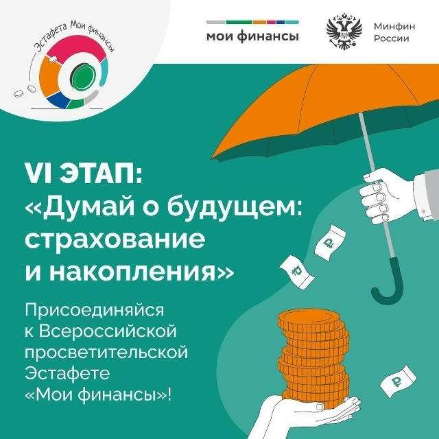 В период c 8 сентября по 15 ноября 2025 года проходит VI этап Всероссийской просветительской эстафеты «Мои финансы». Тема данного этапа: «Думай о будущем: страхование и накопления».