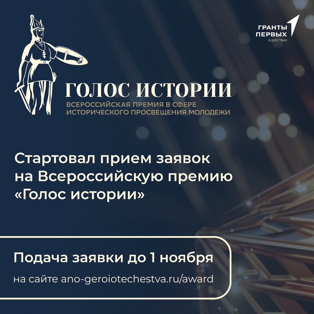 Для школьников от 12 лет, студентов и педагогов стартовал приём заявок на соискание первой Всероссийской премии в сфере исторического просвещения молодёжи «Голос истории».