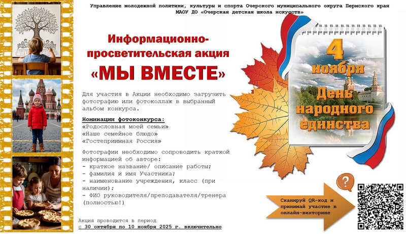 Приглашаем Вас принять участие в акции, приуроченной ко Дню народного единства! Продемонстрируйте единство и дружбу народов России через Ваши фотографии!