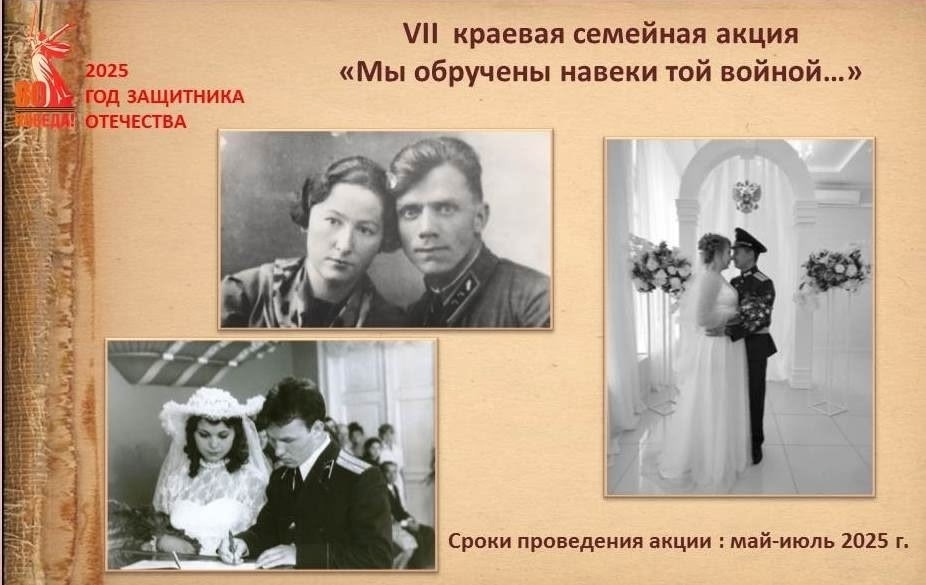 До 30 сентября продолжается прием заявок в рамках VII краевой семейной акции «Мы обручены навеки той войной…», посвященной Году защитника Отечества и 80-й годовщине Победы в Великой Отечественной войне 1941- 1945 годов.